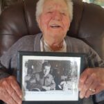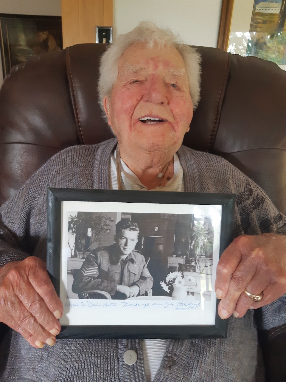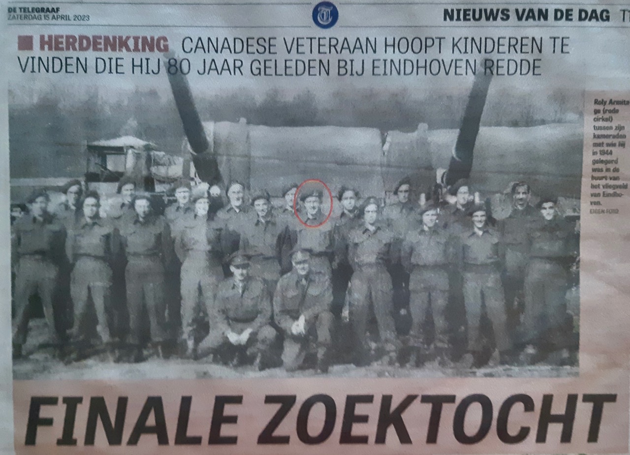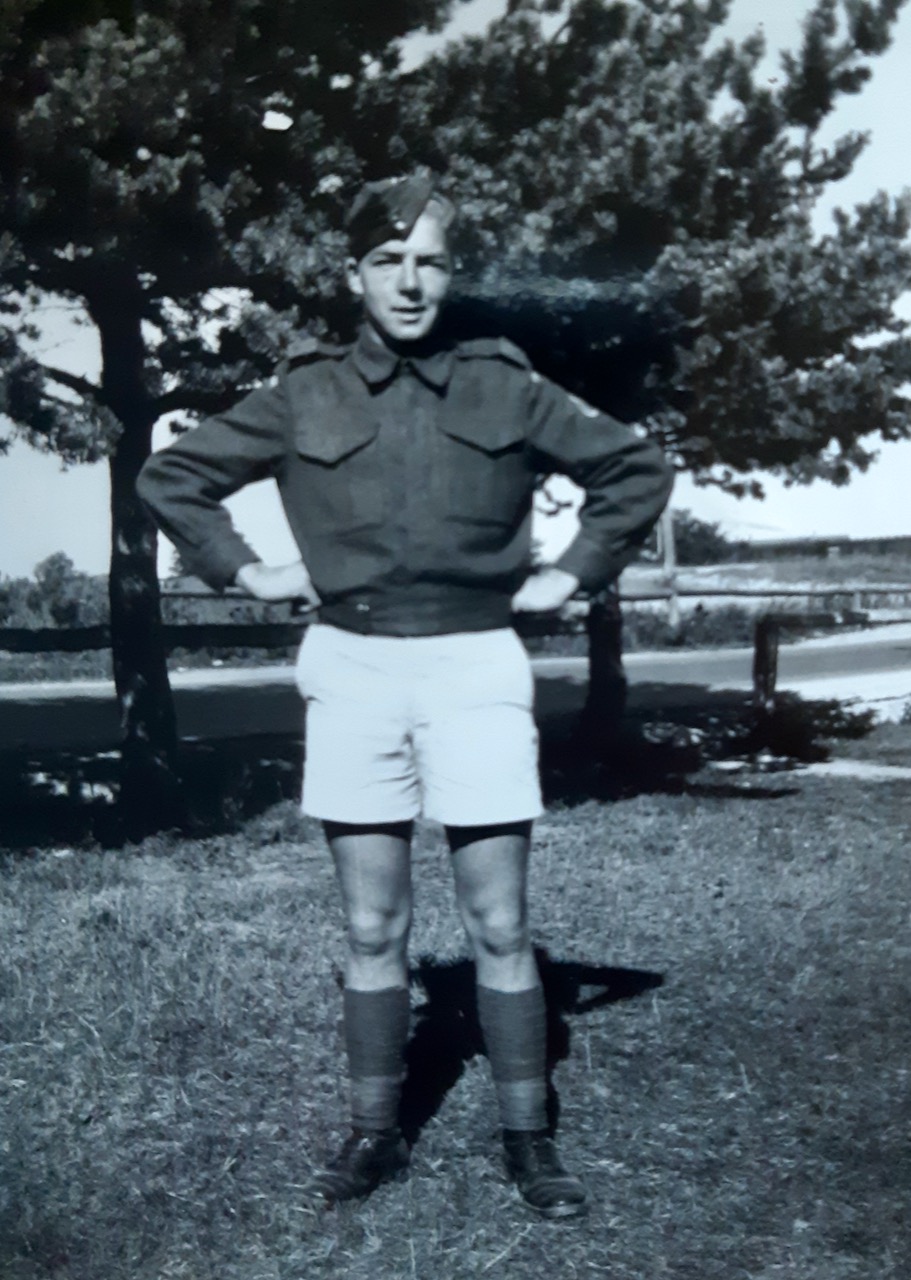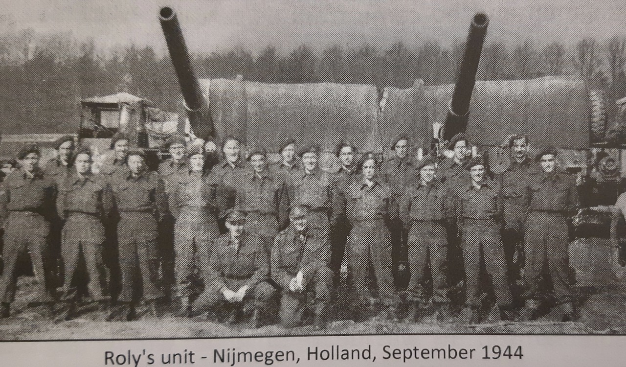 Roly Armitage was born February 8, 1925 in South March, Ontario, in the Ottawa area. He was raised on a farm, with many brothers and sisters. Roly’s father was a veteran of the Great War who saw action at Ypres: he was gassed and while being treated in England he met a young Red Cross nurse who later became his wife. When that war was over Roly’s parents returned to Canada with Roly’s older brother, and they began their life in a log cabin on a farm outside Ottawa. Roly grew up in the rustic conditions of the Ottawa Valley, going to a one room schoolhouse and enjoying life on the farm. Roly was the third of the brothers: when the war came, the two eldest brothers enlisted in the RCAF and the RCN, and the teenage Roly was not about to wait. He left school and enlisted when he was just 15, lying about his age. His father encouraged him to join the artillery, but the young Roly had heard about the paratroopers and wanted to give that a try. He went down to Fort Benning, Georgia, but his age was discovered and he was removed, sent back to Canada and the artillery. Roly trained to be a motorcycle despatch rider at this time, but when an opportunity to go overseas came along he seized it. He was stationed in England for about a year before going to France; he visited London and saw the V-1 attacks, and when not on duty he had plenty of time to play sports. But June 1944 came around, and D-Day took place on the 6th; Rory and the artillery unit (3rd Medium Regiment, 5th Battery) went over to France on D+10. Roly was thrown into the battle right away as Canadians fought through Caen and Carpiquet, and the fighting continued along the coast as the Canadians were tasked with liberating the Channel Ports. Roly saw action in the Battle of the Scheldt, as the port of Antwerp was taken, and the combat continued as Canadians liberated the Netherlands. Roly finished the war in Germany, and he and his fellow gunners celebrated when they heard about VE Day. Roly stayed in the Netherlands for six months, returning to Canada in early 1946 – still just 20 years old. He went back to school and became a veterinarian, enjoying the peaceful rhythms of Canadian life. Crestwood students were fortunate to zoom with Dr. Roly Armitage in November 2022, and Scott Masters visited him in person at his home outside Ottawa in August 2023.