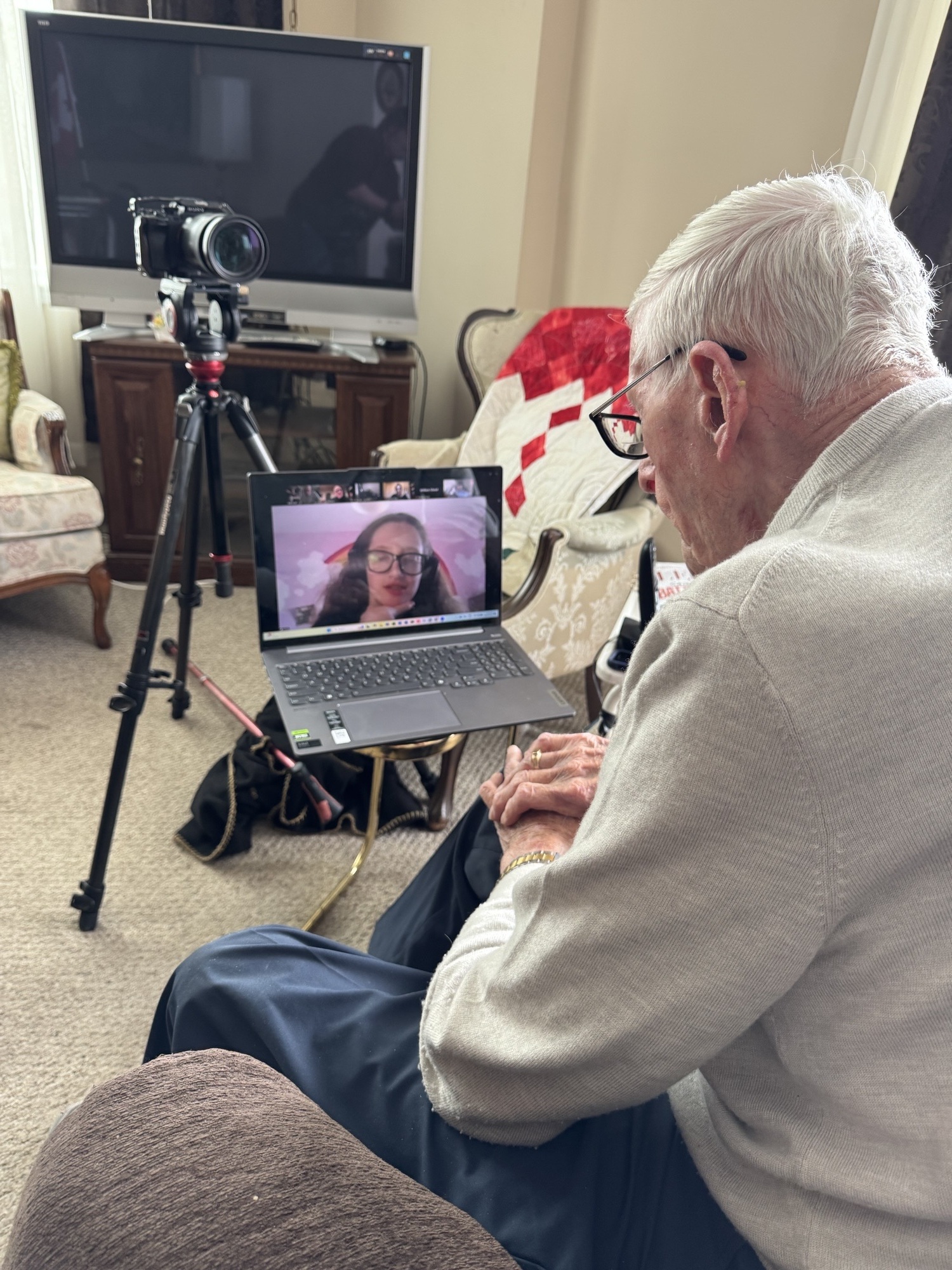 Elmer Auld was born July 4, 1924, and he grew up in Port Arthur/Fort William (now Thunder Bay), Ontario. His father was a Great War veteran who suffered from the effects of being gassed; he was an Irishman from Belfast, Ireland who came to Philadelphia because of the Irish Famine, later going to Port Arthur at age 16 and working for the Canadian Pacific Railroad. Growing up against the backdrop of the Great Depression, Elmer said, “he tried to be a good student”, making it to the 10th grade. He became a telegrapher/driver in 1941, delivering telegrams to families of service members. He said that it was not a pleasant task. He enlisted in the Navy at 17, saying “he had to go”; having seen how his father suffered he did not want to be in the infantry. Elmer spent 4 months at the RCN barracks training in Port Arthur, and his first ship was the minesweeper escort HMCS Burlington (J-250), where he was an ASDIC operator using sound waves (sonar bounces) to monitor U-Boat traffic thru “pings, whoops, pings, whoops.” The crew consisted of 80-85 sailors. They operated between Boston, New York and Halifax. Elmer later served aboard the Corvette Escort HMCS Giffard (K-402) in 50-60 ship convoys from Newfoundland to Londonderry, Ireland. It carried a crew of 100. Elmer participated in 15 convoys of 14-16 day trips, where he observed U-Boats in the convoy’s path. He saw many ships sunk and had the difficult task of rescuing men from the water – and the visions of those he could not rescue. He said that at war’s end were “happy days”, but he also recalls the Halifax Riots, which spoiled what should have been good memories. Elmer was ready to volunteer to go to the Pacific, but the atomic bombs settled that decision. On his return Elmer went home, and within a few years he was married and raising his own family. He said he had no problem re-adjusting to civilian life and that he has experienced no PTSD but does have dreams about rescuing the 18-19-year-old survivors from the water. Crestwood students were able to interview Elmer Auld over zoom from his home in Thunder Bay, Ontario in February 2025.