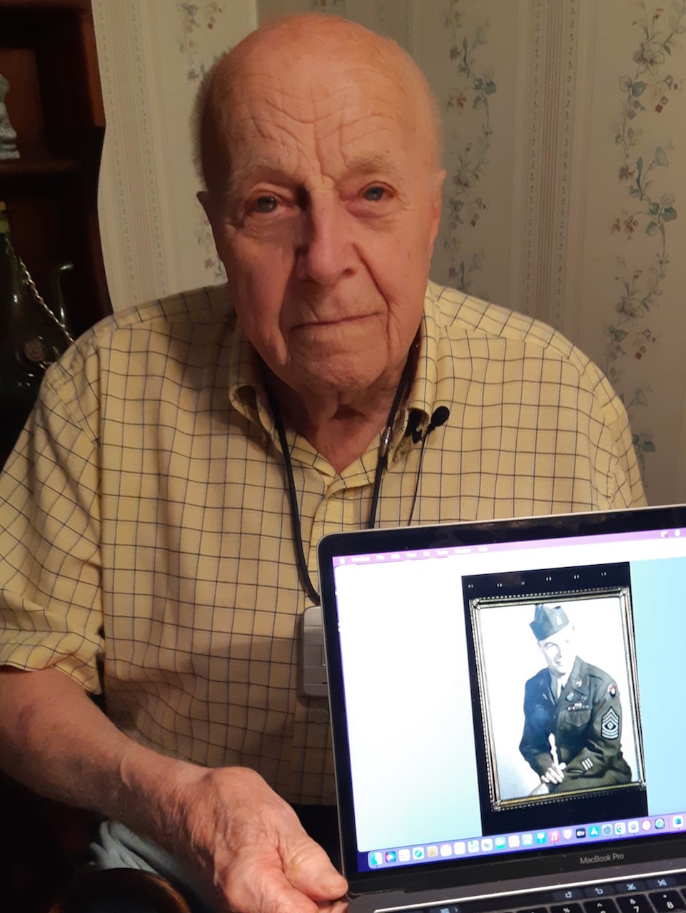 Clayton Bihl was born September 9, 1923 in Buffalo, New York.  He grew up there against the backdrop of the Great Depression, attending Bennett High School and Canisius College.  He and some friends enlisted in the army in 1938, and Clayton went through all the regular training.  He decided though that the army life was not for him, and he was able to transfer to the US Army Air Corps, where he began pilot training.  The war was getting to a critical phase though, and with the Battle of the Bulge and entry into Germany looming he was transferred back to the army – the 103rd Infantry specifically – and sent over to Europe.  Clayton was at the center of the Battle of the Bulge, suffering through the weather and doing his part to hold the line.  The 103rd ended its war at Innsbruck, Austria, and after that Clayton was in the Army of Occupation – and serving as the mayor of a small Austrian town!  He eventually made his way back to Buffalo, where he returned to school and became a math teacher at his old high school.  He also married and raised a family, finding his way in postwar America.  Clayton Bihl was interviewed by Scott Masters at his home in Williamsville, New York in August 2023.