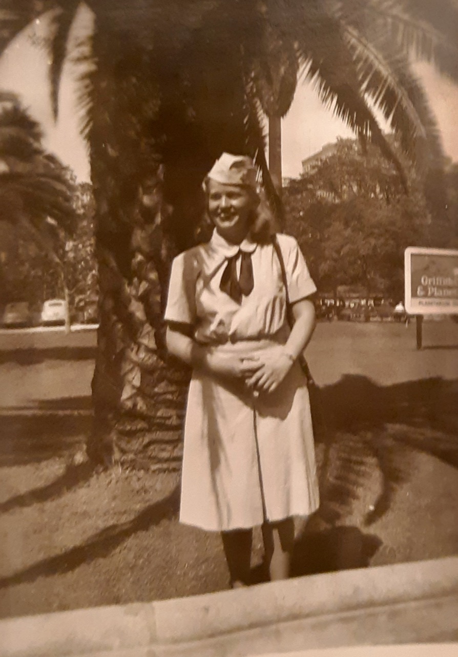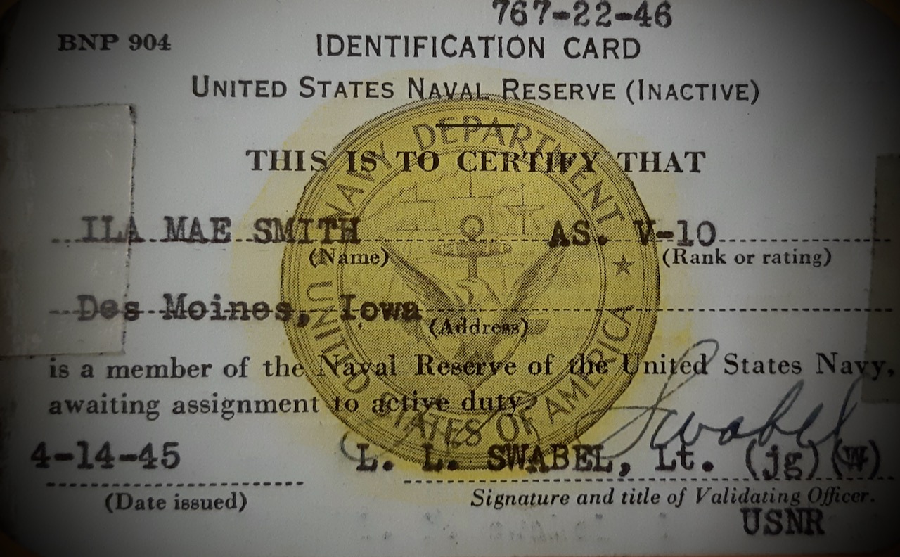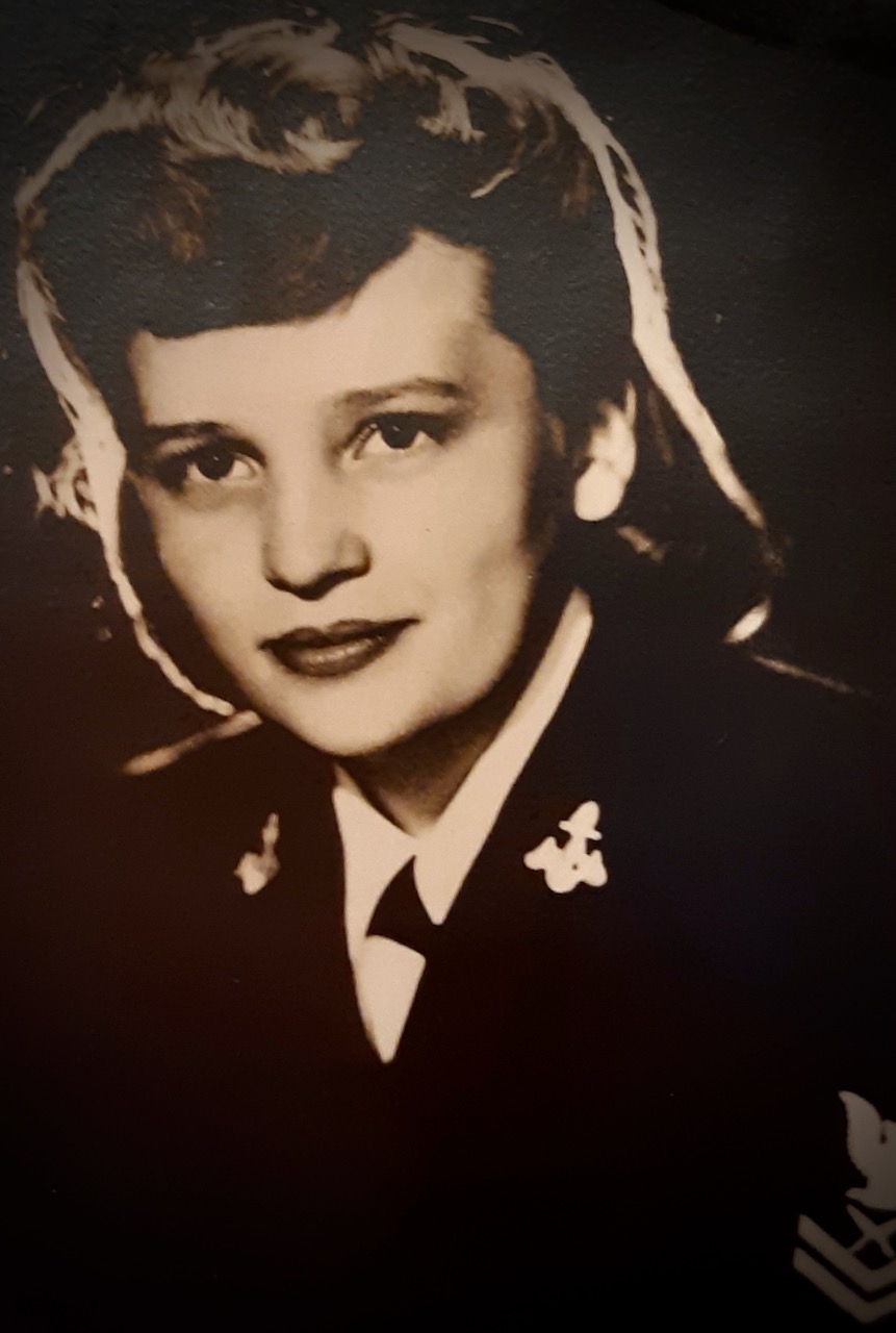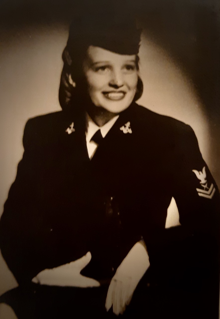 Ila Cole was born March 5, 1925 in Nora Springs, Iowa.  She grew up in town there in a large family with eight siblings; Ila worked a number of jobs and she graduated from high school with algebra and shorthand as her favorite subjects.  She went on to business college, and worked for a time at Better Homes and Gardens.  The war began on December 7, 1941 with the Japanese attack on Pearl Harbor, and Ila chose to enlist in the WAVES.  She went to Hunter College in New York City for basic training, where she learned to march and to do all the navy expected of her.  The war was winding down by this point, and Ila was assigned to San Francisco at this time.  While there she took on duties connected to Naval Air Transport Command, and she began doing flights – usually back and forth to Honolulu, where she would assist in the transportation of families and service personnel.  Ila was able to see a lot of the country during this time, and that included meeting her future husband, Jimmy.  He had been in the navy during the war, and the two of them would settle in the Pittsburgh area, where they would raise their son and play their part in postwar America.