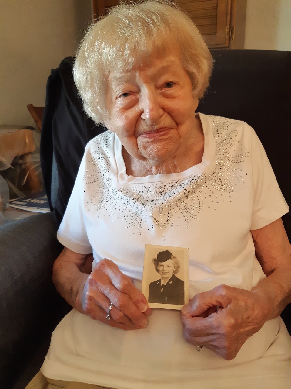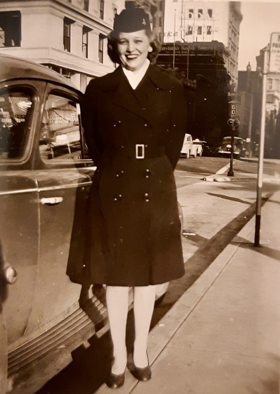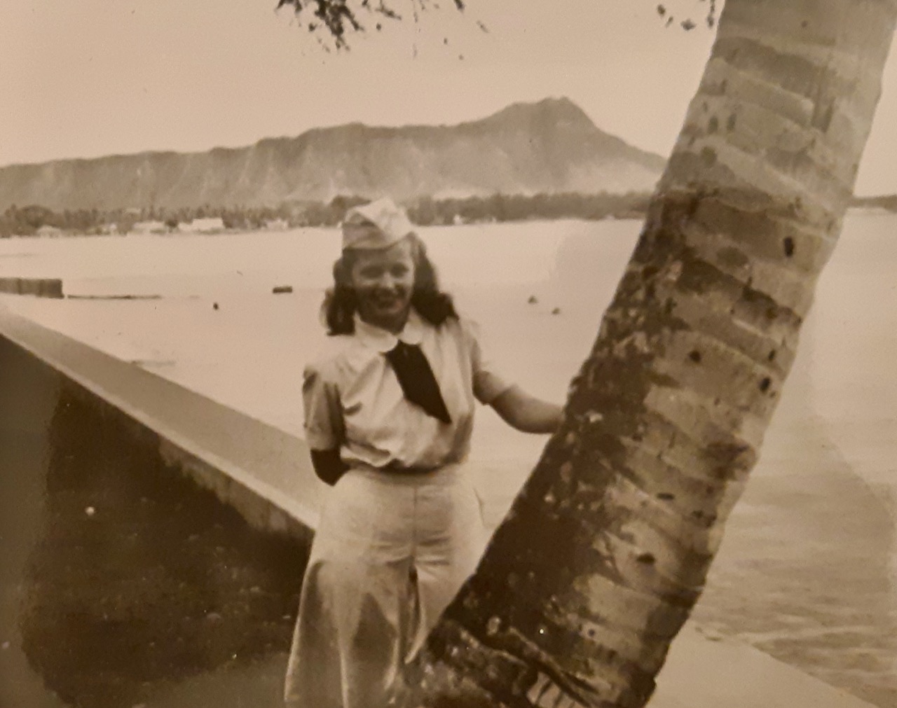 Ila Cole was born March 5, 1925 in Nora Springs, Iowa.  She grew up in town there in a large family with eight siblings; Ila worked a number of jobs and she graduated from high school with algebra and shorthand as her favorite subjects.  She went on to business college, and worked for a time at Better Homes and Gardens.  The war began on December 7, 1941 with the Japanese attack on Pearl Harbor, and Ila chose to enlist in the WAVES.  She went to Hunter College in New York City for basic training, where she learned to march and to do all the navy expected of her.  The war was winding down by this point, and Ila was assigned to San Francisco at this time.  While there she took on duties connected to Naval Air Transport Command, and she began doing flights – usually back and forth to Honolulu, where she would assist in the transportation of families and service personnel.  Ila was able to see a lot of the country during this time, and that included meeting her future husband, Jimmy.  He had been in the navy during the war, and the two of them would settle in the Pittsburgh area, where they would raise their son and play their part in postwar America.
