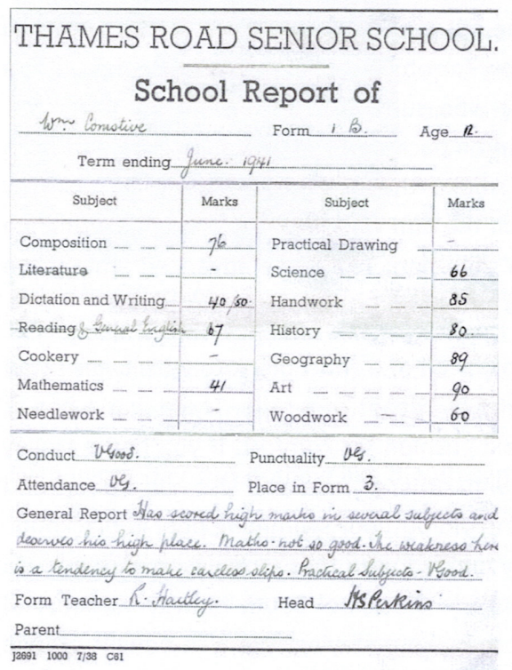 Bill Comstive was born April 3, 1929. His father was a Great War veteran, but he was injured on a postwar job, so Bill’s mother cleaned houses to make ends meet. The family endured difficult economic times in those years. Bill indicated that his father did share memories of his military service: he was assigned to the Pioneer Corps and later the King’s Liverpool Regiment, and he fought in the 3rd Battle of Ypres. The young Bill attended the Thames Road Elementary School in Blackpool, where he was not very good either at arithmetic or algebra. Bill’s father furthered Bill’s education; he discussed day to day topics and read the newspaper to Bill. The times were tense as the clouds of war were gathering. Bill and his father were listening to the radio when the news was interrupted on September 3, 1939 to announce that Britain had declared war on Germany. Bill recalled a van with loudspeakers announcing the declaration of war and playing doleful music too. At the declaration of war Bill’s father and mother were assigned jobs. His mother was a cashier at a laundry and was sent to do the same at the new aircraft factory, and his father was sent to the Ministry of Pensions in London. Meanwhile the young Bill assembled gas masks, which he carried with him for the next 2 years! During the Blitz, the miniature Eiffel Tower in Blackpool was used by the German fighters as a landmark for navigation. Bill could see the flames in Barrows and Liverpool from the German incendiary bombs that were dropped. Bill came of age in this time, and he remembered the wartime rationing, victory gardens, blackouts – and the Americans and Canadians stationed in the area. He said that he volunteered to harvest, dig up and pick potatoes, and he fondly recalled the National Wheatmeal Bread. Bill was in grammar school on VE-Day, and as he was still young he had no expectation of having to go to war and missed being called up by 18 months. He became an accountant in his uncle’s practice and went on to raise his own family. Bill is a Crestwood grandparent, and he was interviewed over zoom from his home in England in October 2024.