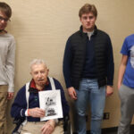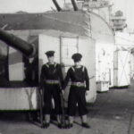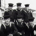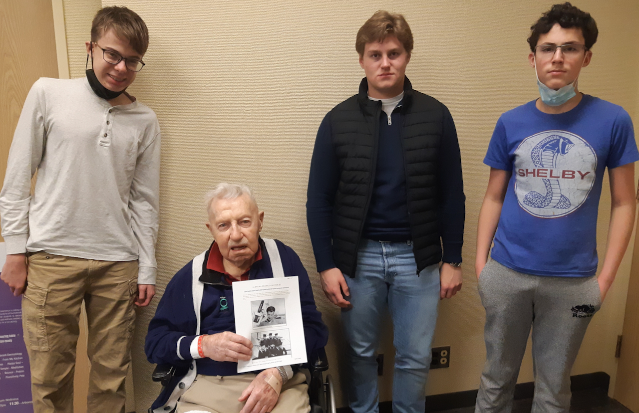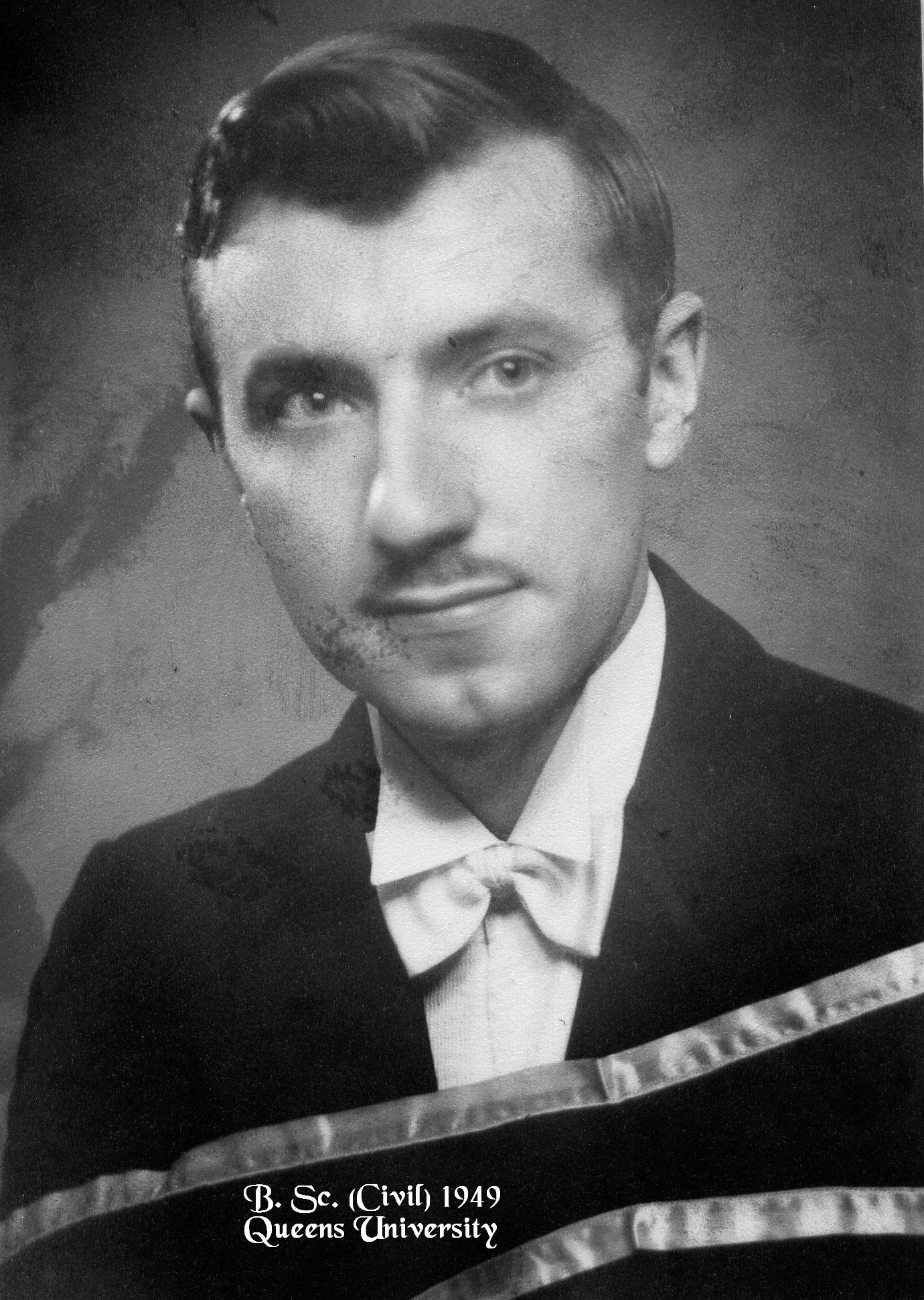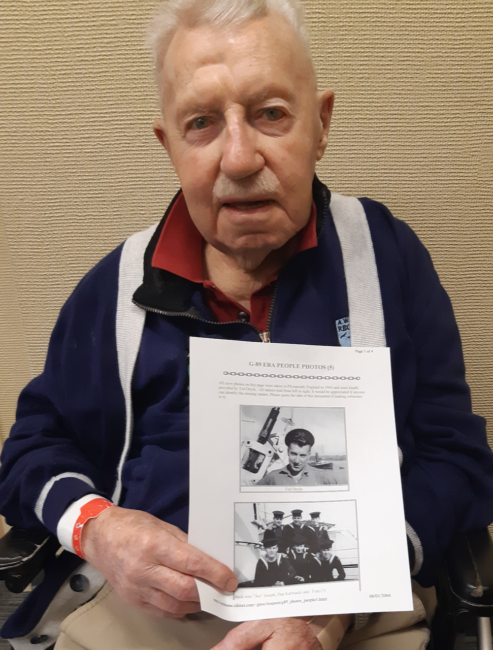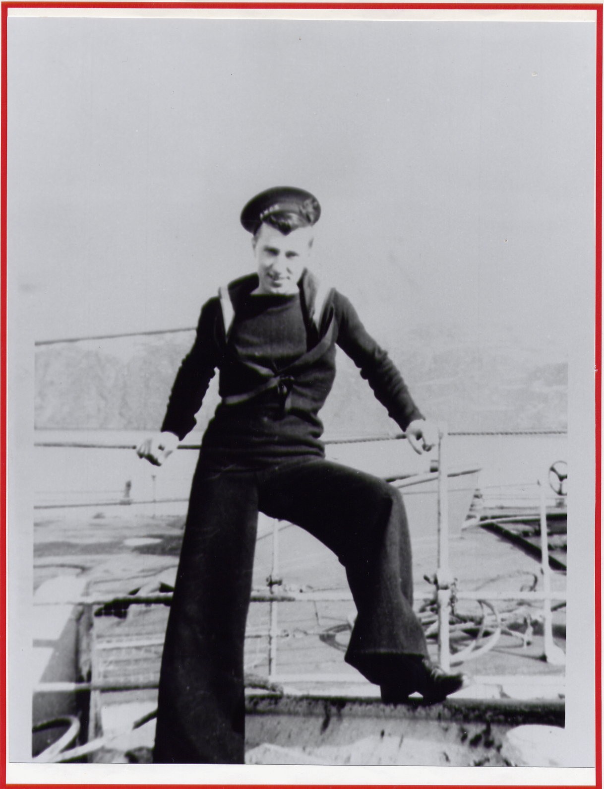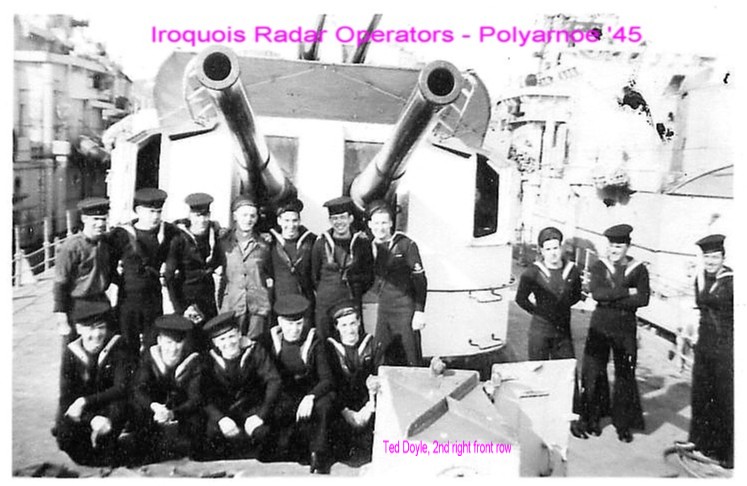 On May 7, 1924 Theodore Joseph Doyle was born to Irene and William Doyle in Belleville, Ontario. He was the second of five children:  Bill Doyle, Ted Doyle, John Doyle, Sheila (Doyle) Jewson, Kevin Doyle.  Ted attended St. Michael’s Academy and then completed his high school education at the Belleville Collegiate Institute.   In 1942, he entered Queen’s University’s Bachelor of Science program, and in the spring of 1943, he went to the east coast as part of a University Naval contingent. There he joined the Royal Canadian Naval Volunteer Reserve as an Ordinary Seaman.  After training at HMCS Cornwallis, he was assigned to HMCS St Francis. The St Francis was a WWI American destroyer, one of several given to England in 1941 in exchange for bases in Newfoundland and Labrador.  After a few months on the St Francis, Ted applied for and completed a course in Radar.  Upon completion, he was assigned to HMCS Iroquois, a new Tribal Class destroyer. Early in 1944, the Iroquois returned to England where it spent several months with a ‘striking force’ in the Bay of Biscay attacking convoys and their escorts.  In 28 days in August1944, the Iroquois steamed more than 10,000 miles, fired more than 3,500 rounds of heavy ammunition alone and assisted in the sinking of 23 ships.  In addition, the Iroquois was called upon to carry out anti-submarine duties, fast convoy escorts and Murmansk Convoy duties. On May 7, 1945, the Iroquois was in Scapa Flow, and on May 8, the European War ended. A few days later, the Iroquois was one of a group of ships assigned to escort the Crown Prince of Norway back to Oslo.  From there it went to Copenhagen to pick up two German Cruisers, the Prince Eugen and Gneisenau, and deliver them to Wilhelmshaven, Germany.   In July, the Iroquois returned to Canada.  Ted was discharged in October 1945. And in January 1946 he returned to Queen’s and graduated in 1949 with a degree in Civil Engineering.   In August of that year, he joined the Foundation Company of Canada as a construction field engineer in Toronto.  He served in that capacity until January 1955.  During that time, he met and married Betty Noble in 1952, and had their first son, Terrence Michael Doyle, born in 1954.  In November 1956, a second son was born, Kevin Joseph Doyle, and daughter Trish followed in April 1966.  Crestwood students were able to interview Ted about his experiences at the Sunnybrook Veterans’ Wing in December 2023.