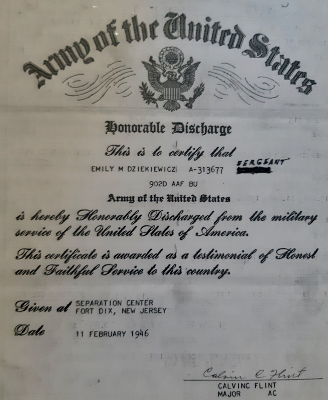 Emily Drake was born July 4, 1925 in Sharpsburg, Pennsylvania. Her parents had emigrated from Vilna in the period before the First World War, and Emily remembers growing up speaking Polish at home. Her childhood took place during the Great Depression, but – too young to be aware of pressing economic and political matters- she remembers playing in the streets. She was 16 when the Japanese attack on Pearl Harbor took place, and when her two older brothers and sister-in-law joined up, Emily wanted to as well. She was too young to enlist, so she lied about her age, but her parents ended signing on her behalf. Her first task was to take a course in stenotype, and the army ended up using those skills in interviews for men going through the dependency discharge process. Emily recalls hearing some shocking stories during that time – not the kind of thing a 20-year old girl had heard before – ! She recalls many other episodes: a trip to New York where a trip to the Vanderbilt Mansion led instead to a seedy Bowery hotel, and a difficult Christmastime trip to Florida. As the war came to an end Emily’s facility with languages worked to her advantage when she came into the employ of the Polish Embassy in Washington, D.C. She worked there for six years, followed by another six year stint at the VA in Pittsburgh; then Emily learned about a civilian opportunity in the USAF, and she was off to Germany. Her boss later transferred to Langley, Virginia, bringing Emily back to the US, and retirement and San Diego soon followed. Emily Drake was interviewed by Scott Masters at her home in Pittsburgh in August 2023.