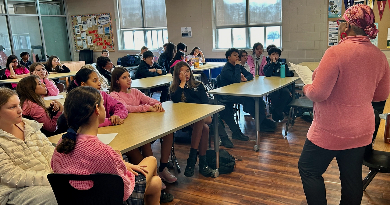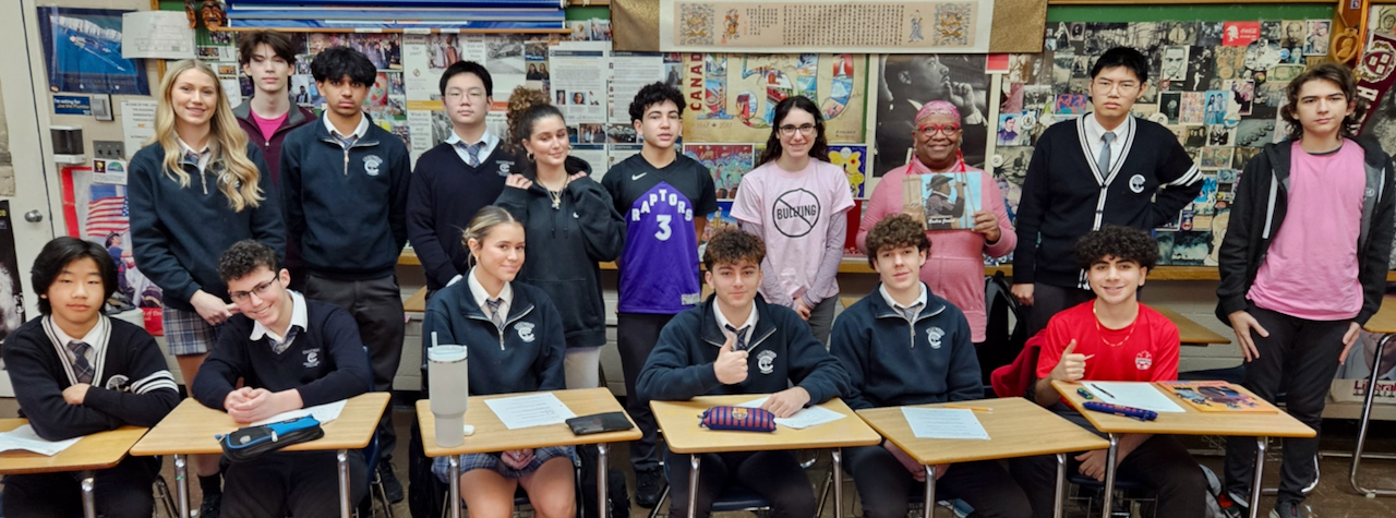 Bushra Junaid is a multidisciplinary artist-curator and author based in Toronto. She grew up in St. John’s, Newfoundland, where she and her siblings were raised by her Nigerian and Jamaican parents. Bushra’s own life story and her memories of the culture and food of Newfoundland provide a backdrop to the narrative and themes of her own work, which probe notions of history, memory, identity, and belonging. Many of her works look at the Atlantic connections between the African diaspora communities in Newfoundland and the Caribbean, and they focus on the commodities that were traded between them, and the cultural legacy that endures. Bushra visited Crestwood in February 2024, where she shared her story and work with Crestwood students in a Black History Month presentation. That included the fascinating story behind The Possible Lives of W. H., Sailor, a work of poetry and art that Bushra published in 2022. She was inspired by the remains of a sailor found in Labrador; with that and her research into the lives of Black seamen Bushra created her book, which imagined what the life of this man must have been like. That and her other work inspired Crestwood students to look at and consider history in a new way!