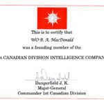 Barry MacDonald was born February 17, 1955 in Halifax, Nova Scotia.  He grew up in the Eastern Passage area of Nova Scotia, the son of a World War Two veteran.  Barry made the decision to enlist in his own right in 1971; as he was underage his parents signed on his behalf, and Barry’s career began in the militia unit of the Princess Louise Fusiliers.  He completed basic training and was set to start a path in the Canadian Forces infantry, but he had heard about other options by then, one being the Canadian Forces Security Branch, an amalgamation of the Provost and Intelligence Corps.  Barry served as an Intelligence Operator and a member of the Military Police, all as the Cold War was evolving.  Having done well in those early years Barry was asked to join the regular forces, which he did.  He continued on his pathway of intelligence work, first with the Special Service Force in Petawawa, and then in Ottawa.  In that last posting Barry was involved in 24/7 monitoring of different global threats that could have impacted Canada or its allies.  Barry had also volunteered for overseas duties at this time, and he was deployed to Cyprus in 1981 for two consecutive tours of UN peacekeeping operations.  He returned to Canada to a number of postings in Ontario – Ottawa, CFB Borden and Toronto.  His work in intelligence continued and he began teaching courses in leadership.  On a personal note, he also met his future wife Biz Carrigan during this time.  His path also opened new opportunities in overseas service too, which included a 3-year posting to the Canadian Embassy in Prague, Czechoslovakia in the late 1980s.  He and Biz had the opportunity to live behind the Iron Curtain and to see a very different side of life.  The posting to Czechoslovakia finished just as events that would lead to the Velvet Revolution were ramping up, with the fall of the Berlin Wall only a few months away.  Barry returned to Canada to Kingston, where he was posted to 1 Cdn Div HQ, and where he would be a founding member of 1 Cdn Div Int Company.  In 1993 a transfer to North Bay took place, where Barry served in the bunker 600 feet underground, monitoring Russian strategic activities and supporting the NORAD mission.  Another Ottawa posting followed, where Barry worked at the imagery centre, developing his skills alongside the ever-changing technology of his trade.  An invitation to Colorado followed, where Barry worked “inside the mountain”, doing his part to monitor North American airspace in the difficult time after 9/11.  After a few happy years in Colorado, Ottawa beckoned again, so Barry and his family returned north.  Promotion through the ranks had taken place through this time, as Barry had risen from warrant officer to lieutenant to captain and now major; soon he would retire as a lieutenant-colonel. Barry MacDonald was interviewed by Scott Masters at his home in Ottawa in July 2024.