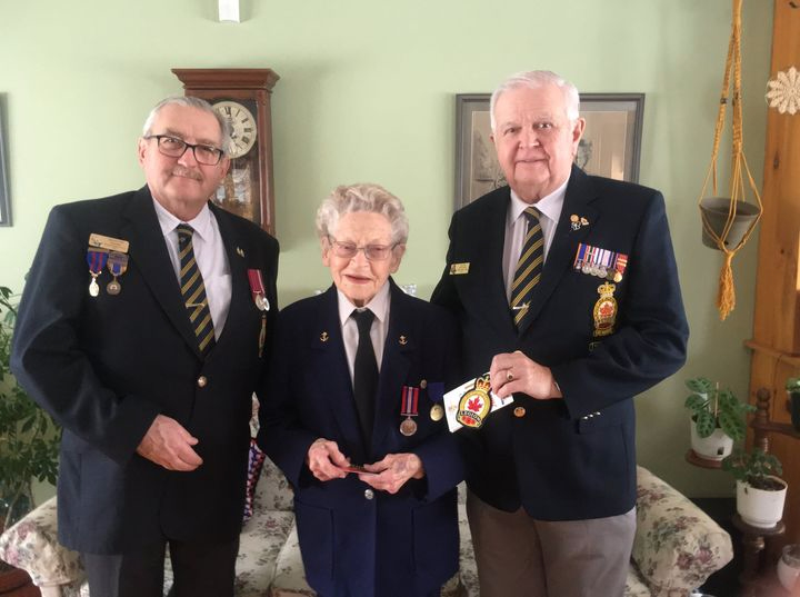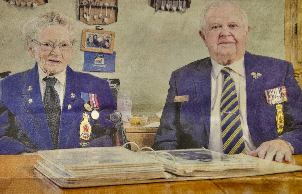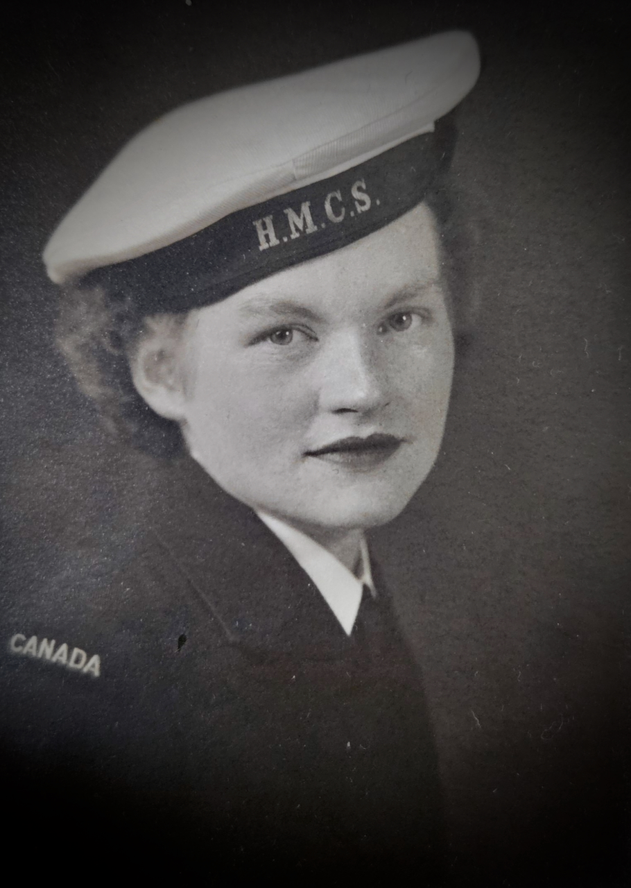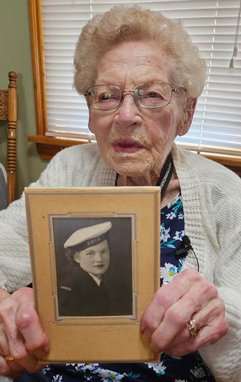 Jean MacLean (nee Morley) was born September 11, 1924 in Norwich, Ontario, and she grew up in Claremont, just to the east of Toronto.  Her father Fred was a jeweler and general labourer who had served overseas in the Great War, and her mother Verna was a nurse.  Jean grew up against the backdrop of the Great Depression in a family with five brothers and one sister; she Finished school after Grade 10, having to leave early to help support the family after her father suffered a heart attack.  Prior to the war she and her sister went to Toronto and took work as clerks at the Robert Simpson store.  One day of her lunch break her sister picked up an application for the military, bringing home an extra one for Jean.  Their older brother was already in the RCAF and was overseas, and he had urged his parents not to let the girls join.  They did though, choosing the navy and becoming WRENs.  Basic training came next and the sisters reported to HMCS Conestoga in Galt, Ontario.  For Jean HMCS Cornwallis came next, and she was off to Halifax.  She had indicated an interest in signals, but they needed cooks, so that’s where she was assigned.  While at Cornwallis she had a chance encounter with a sailor named Harvey MacLean, who came from Meadow Bank, P.E.I.  Harvey was doing convoy duty in the north Atlantic, a critical and dangerous part of Canada’s war effort.  The two kept in touch, and they married on April 17, 1945 at the Dockyard Chapel in Halifax.  The war ended the next month, and after discharge they moved to P.E.I., where Jean began her life as a farm wife and homemaker.  She was actively in her community, working through her church and voluntary organizations on an array of charitable activities.  Jean MacLean was interviewed by Scott Masters at her home in Meadow Bank in July 2024.