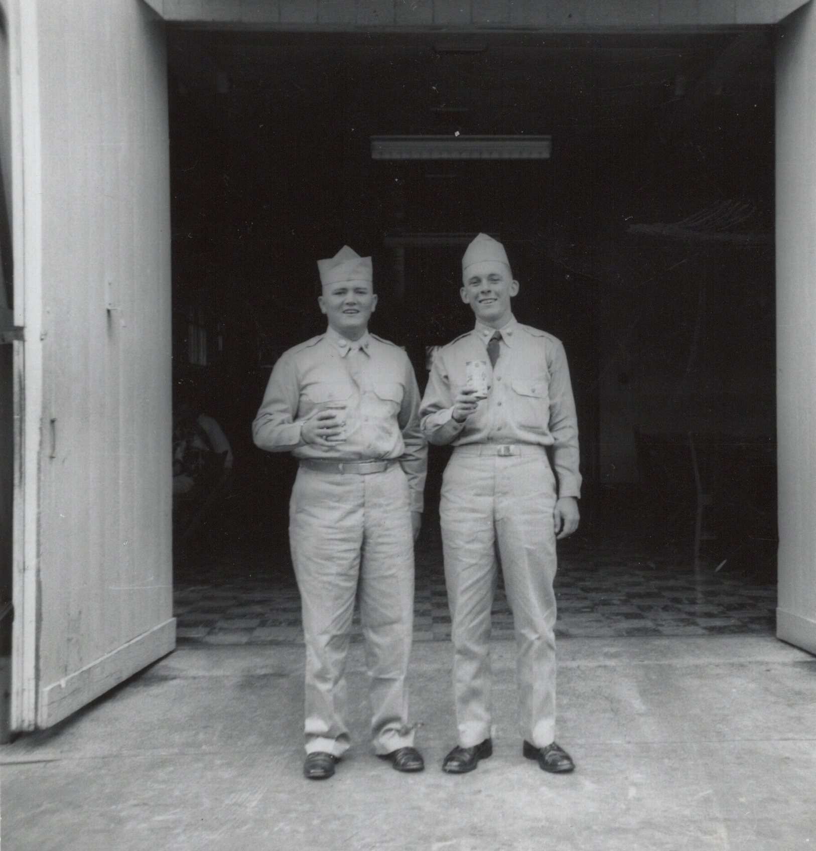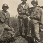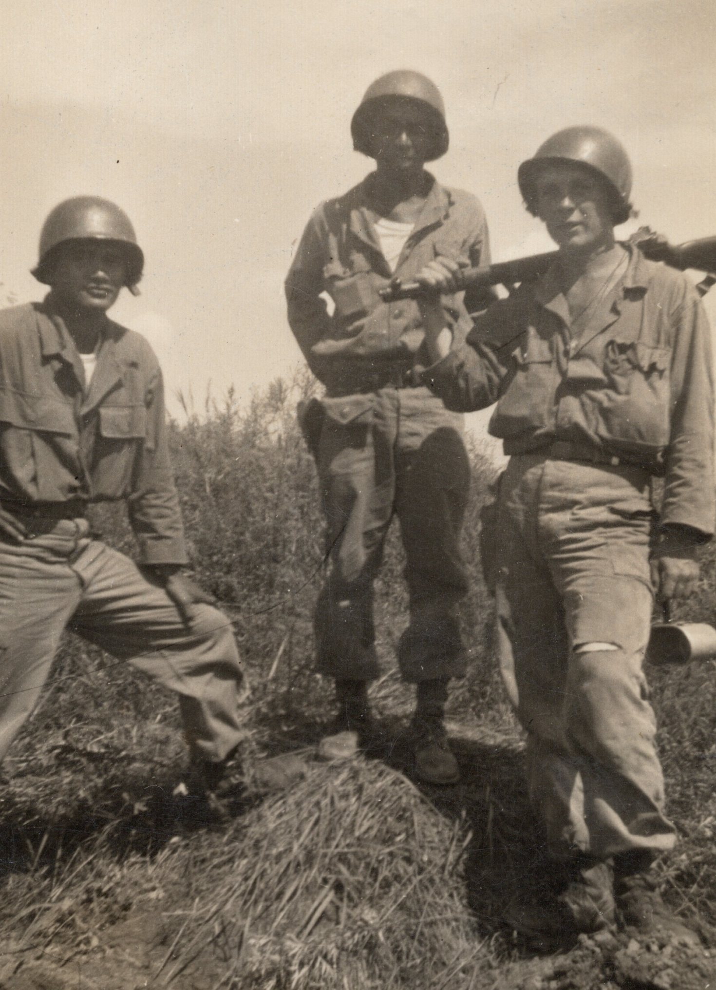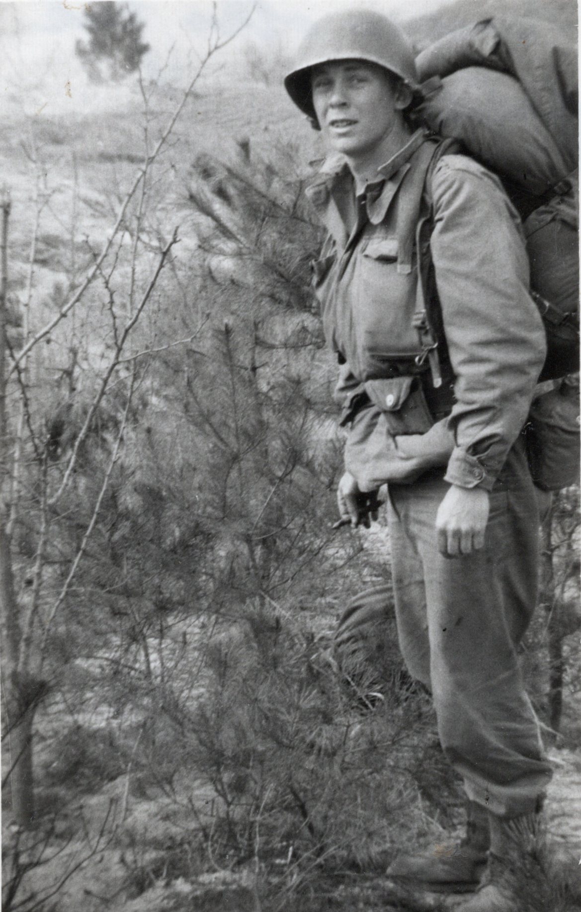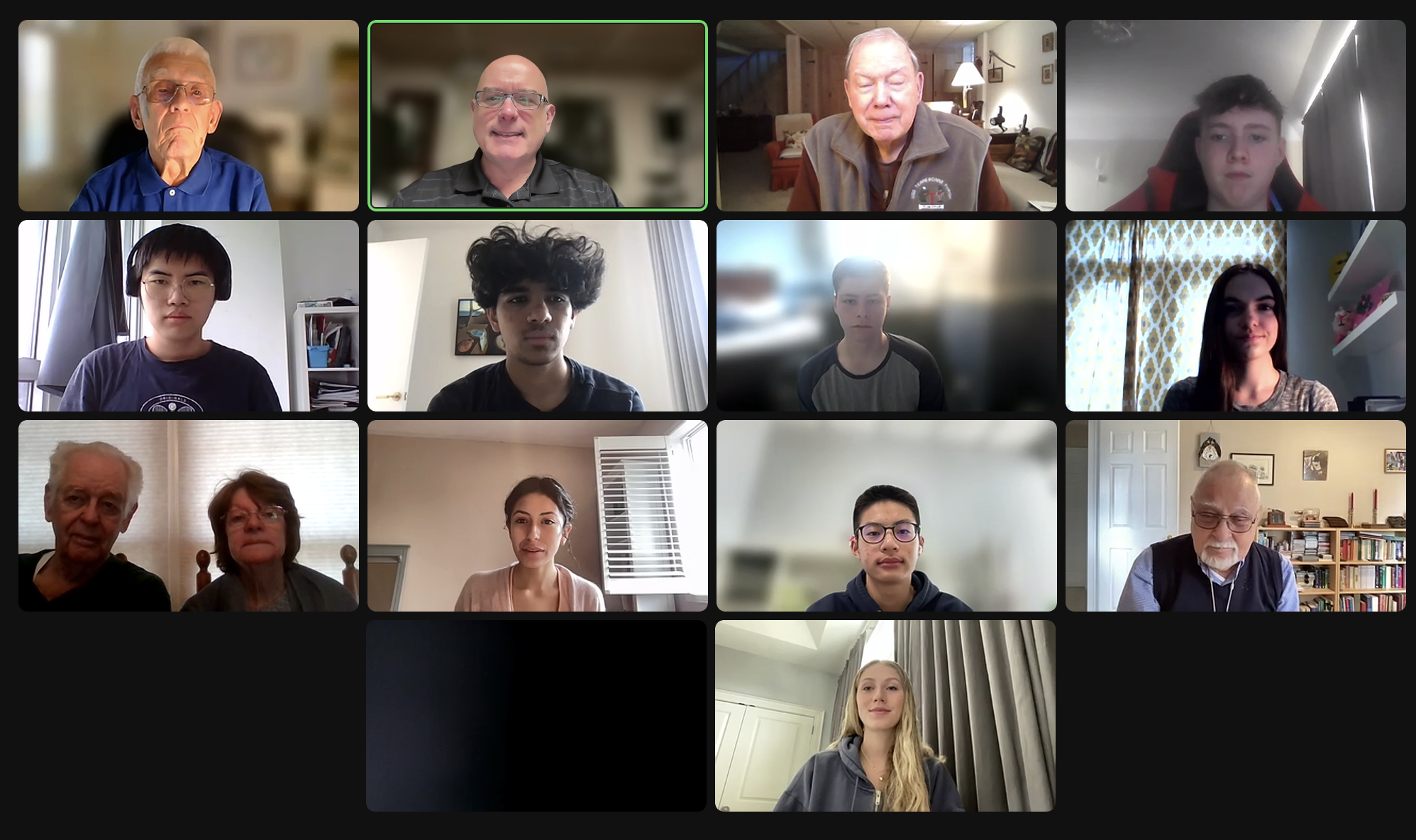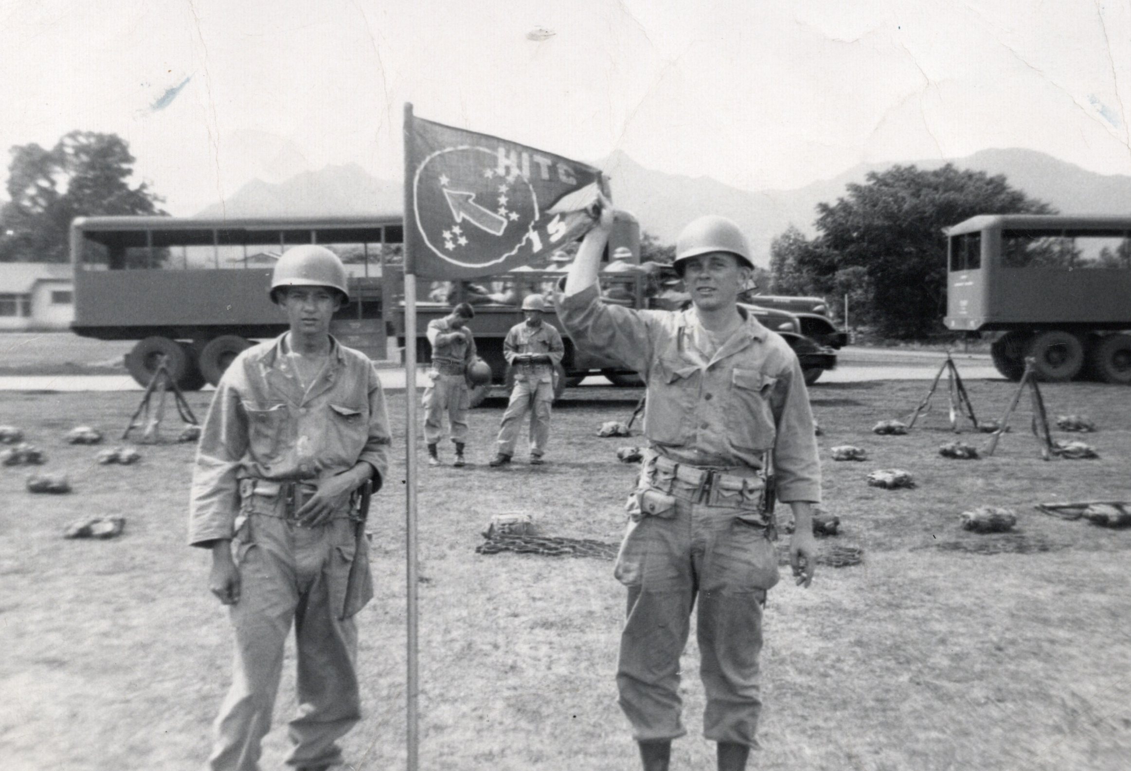 Richard (“Dick”) Pruter was born August 10, 1927 in Chicago. His father lost his job in the tough years of the 1930s though, so the family moved to Westside, Iowa. By 1942 Dick lived in San Francisco near the Richmond Shipyard, and he worked at the Judson Pacific Steel Barge works. He also worked at a dry dock in Oakland building C2 cargo ships while he attended junior college. He had hoped to become a pilot. At 17 Dick went to Pier 5 and joined the Merchant Marines. His first ship was the San Mateo Victory, though he was ashore and celebrated VJ Day on Market Street. He did sail to Sasebo, Japan to deliver PX supplies of liquor and brandy, and he also had the occasion to visit many ports – Bristol, Liverpool, Saigon, and Batavia among them. He transited the Panama Canal on six occasions and the Suez Canal five times. He graduated from a Blue Water Sailor to Able Bodied Seaman and sailed on a Liberty Ship to India. Not long after, he was recruited by three federal marshals on a stop in Honolulu, and he went from Tripler Base to Ft. Ord to Schofield Barracks. He was in the army now, ready to play his part in the emerging Cold War. His journey to Korea started with a DC-4 Pan Am flight to Wake Island en route to Camp Drake, Japan. He was assigned to a clerk-typist school. From there he took the train to Sasebo and a ferry to Busan. Most of his buddies weren’t so lucky as they transited by ship. Dick was initially assigned to personnel but transferred to the 31st Infantry Line Co., or “The Polar Bears” of the 7th Division, where he was part of a mortar platoon. He was an Acting Platoon Sgt. for 6 months and earned the prized Combat Infantry Badge. Dick was discharged home in April 1953, and he went on to earn a degree in electrical engineering; he decided to go back to sea with the Merchant Marines. Dick also married his fiance Agnes in June 1961, and the two of them went on to build their lives together in the decades that followed. Crestwood students were able to zoom with Dick in April 2024.