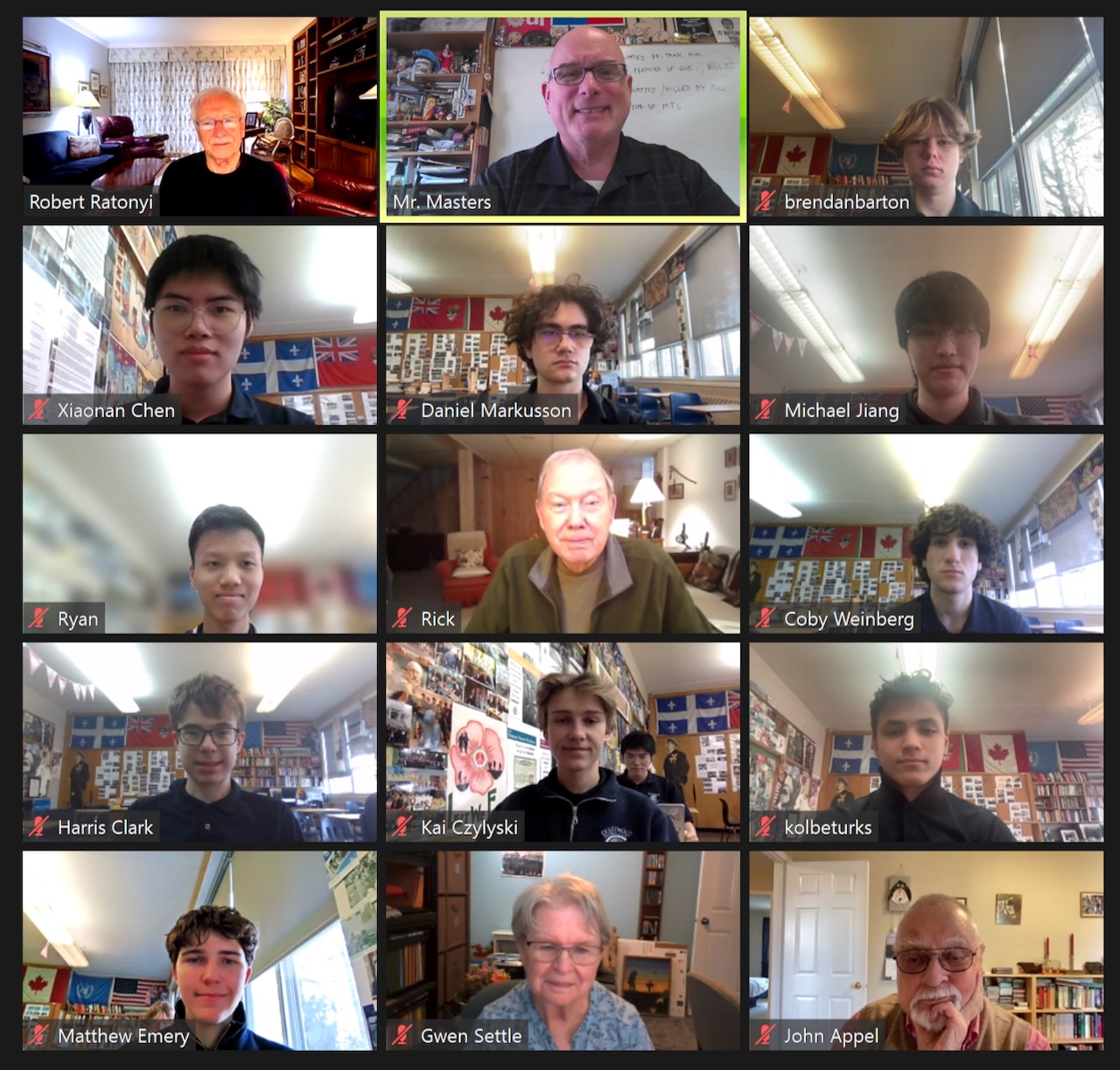 Robert Reichmann was born on January 11,1938 in Budapest, Hungary.  He later decided to change his name to Robert (Bob) Ratonyi, hoping to escape the name-associated antisemitism that was prevalent even in postwar Hungary.  In the early part of the war, Bob mentioned that Hungarian Jews were an insulated group:  in November 1940 Hungary’s Horthy regime had joined the Axis.  Bob’s father was conscripted and left home at that time.  Bob was brought up Jewish but his family only celebrated holidays; he received a Jewish education and his Bar Mitzvah.  Later in the war – in the decisive year of 1944 – Bob said that he and his mother had to wear the Yellow Star mandated by SS Chief Adolf Eichmann.  That same year the Allied bombing of Budapest began, and Bob also has memories of being forced to live in the Ghetto.  His grandparents, the Spitzers, lived in an apartment at 106 Kiraly Street.  There were 8 of them in total: the grandparents, an aunt, 3 cousins, Bob and his mother.  Bob said that he was malnourished and lethargic during the time in the ghetto.  He reflected that on October 10, 1944 his childhood was shattered.  The Jewish women were separated and sent on a forced march, and his mother was sent to an Austrian labor camp.  They were not reunited until the summer of 1945.  In 1944 the Red Army encircled Budapest, and the pro-Nazi Arrow Cross accelerated its efforts to murder the remaining Jews.  Men, women and children were killed during mass shootings on the Danube River in those final days.  Bob’s family was lucky to survive: Swedish Schutz-Passes and a quick-thinking cousin made that possible.  Life settled into a new pattern with the end of the war, and Bob was able to see the return of his mother after the war.  Bob left Hungary with his her blessings in 1956, and in 1957 Bob became a Canadian immigrant.  He met his wife, also a Holocaust survivor, on a blind date in Montreal, and they married in 1963.  Later they emigrated to the US, living in Dallas and then Atlanta. In 2004-2005 Bob started writing his story From Darkness into Light. His family never talked about their experiences during the Holocaust.  He says that it is therapeutic. He also highlights his impressions of the Declaration of Independence and the US Constitution, emphasizing that his new home is a  land of opportunity.  Crestwood students had the opportunity to zoom with Bob in April 2024.