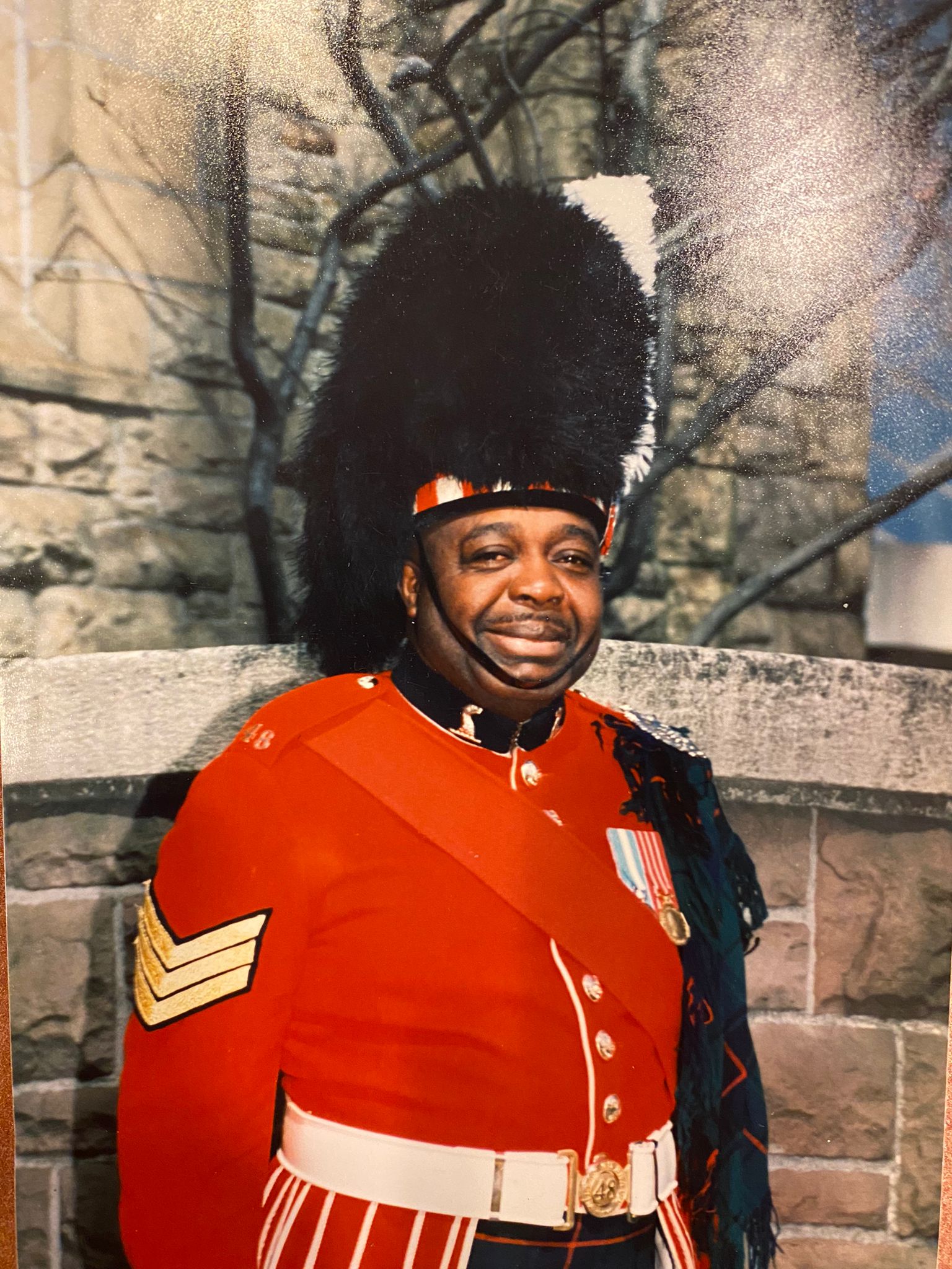 Oswald Reece – Ozzie – was born March 17, 1951 in Guyana. He came from a military tradition, with a number of relatives having served alongside British troops in the world wars. He came to Canada when he was young, and completed his schooling in Toronto. As Ozzie recalls, he always wanted a kilt, so as soon as finished school in 1975 he went to join the forces, ending up in the 48th Highlanders. In his third year he did an overseas deployment to West Germany, where he participated in training with NATO forces. Ozzie took part in several UN peacekeeping missions too, serving in Cyprus, the Golan Heights and Egypt, helping to preserve fragile ceasefires in trouble spots around the Mediterranean. Ozzie remained in the reserves for many years, and he became a well-known and well-liked member of the 48th Highlanders. Crestwood students were able to interview Ozzie at the Sunnybrook Veterans’ Wing in December 2023.