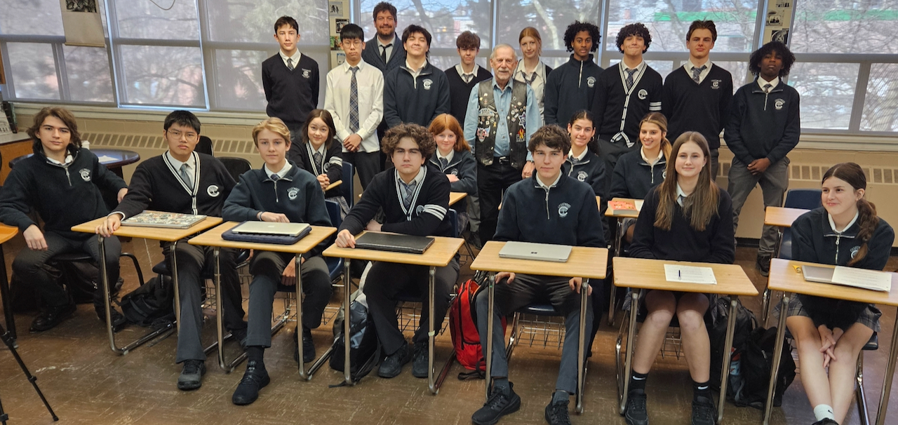 Andy Reti was born July 16, 1942 in Budapest, Hungary. He is a child survivor from the Shoah. Andy’s father did not survive those terrible years: he was taken to a forced labour battalion and later murdered in Auschwitz Birkenau. Andy, along with his mother and grandparents, survived the horrors of the war through good fortune and grit. Andy described here the fateful day in October 1944 when the fateful knock came on their door; the Hungarian Nazi Party – the Arrow Cross – was now in power, and the family was ordered to take their belongings on five minutes notice. They were forcibly marched through the streets of Budapest, where they were jeered by the crowd and saw their meagre belongings stolen. They were then held in an open air race track for several days, where the conditions were brutal. At one point mothers were separated from their children, but Andy’s grandmother picked him up, and through the intervention of a policeman they were directed to a group that would ultimately be saved by Raoul Wallenberg. The next few months found them in the ghetto, dealing with hunger and deprivation; on January 18, 1945 they were liberated at the hands of the Soviet Red Army. The communist regime was soon in place, and when the revolution came in 1956, they escaped Hungary and came to Canada as refugees. In Canada, they settled in Winnipeg and went on to build new lives for themselves. Andy has worked as a swimming instructor and cab driver and author and museum guide, and he has also been a speaker at the Toronto Holocaust Center. He was first interviewed for this project in September 2015, and in March 2024 he returned to Crestwood to speak to one of the Grade 10 History classes.