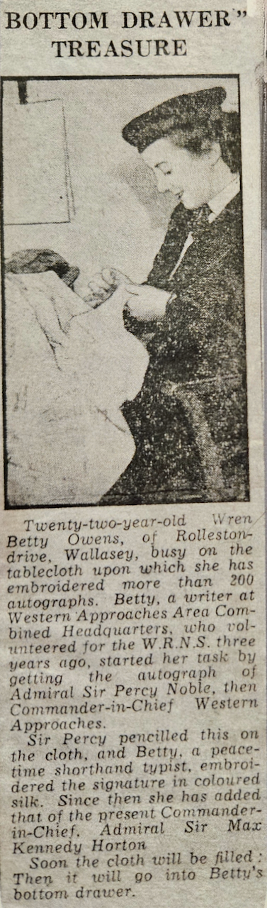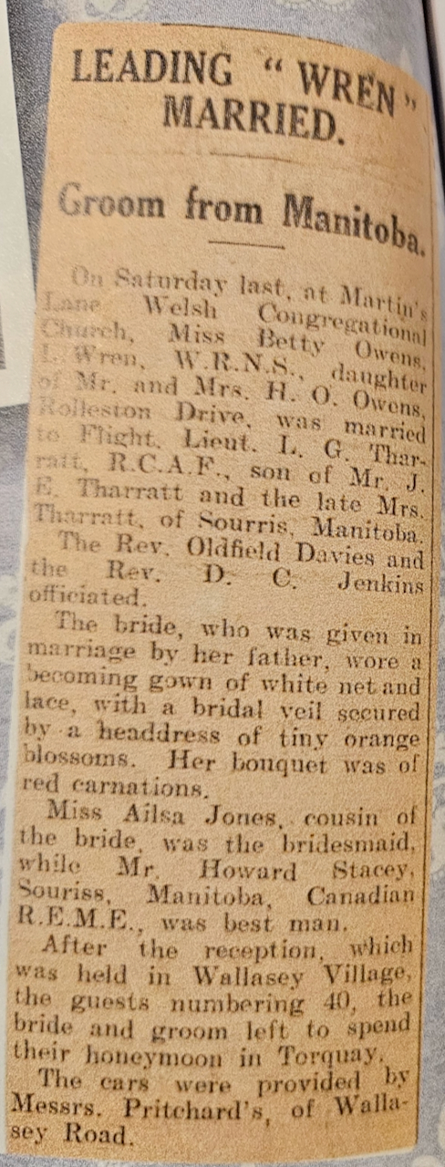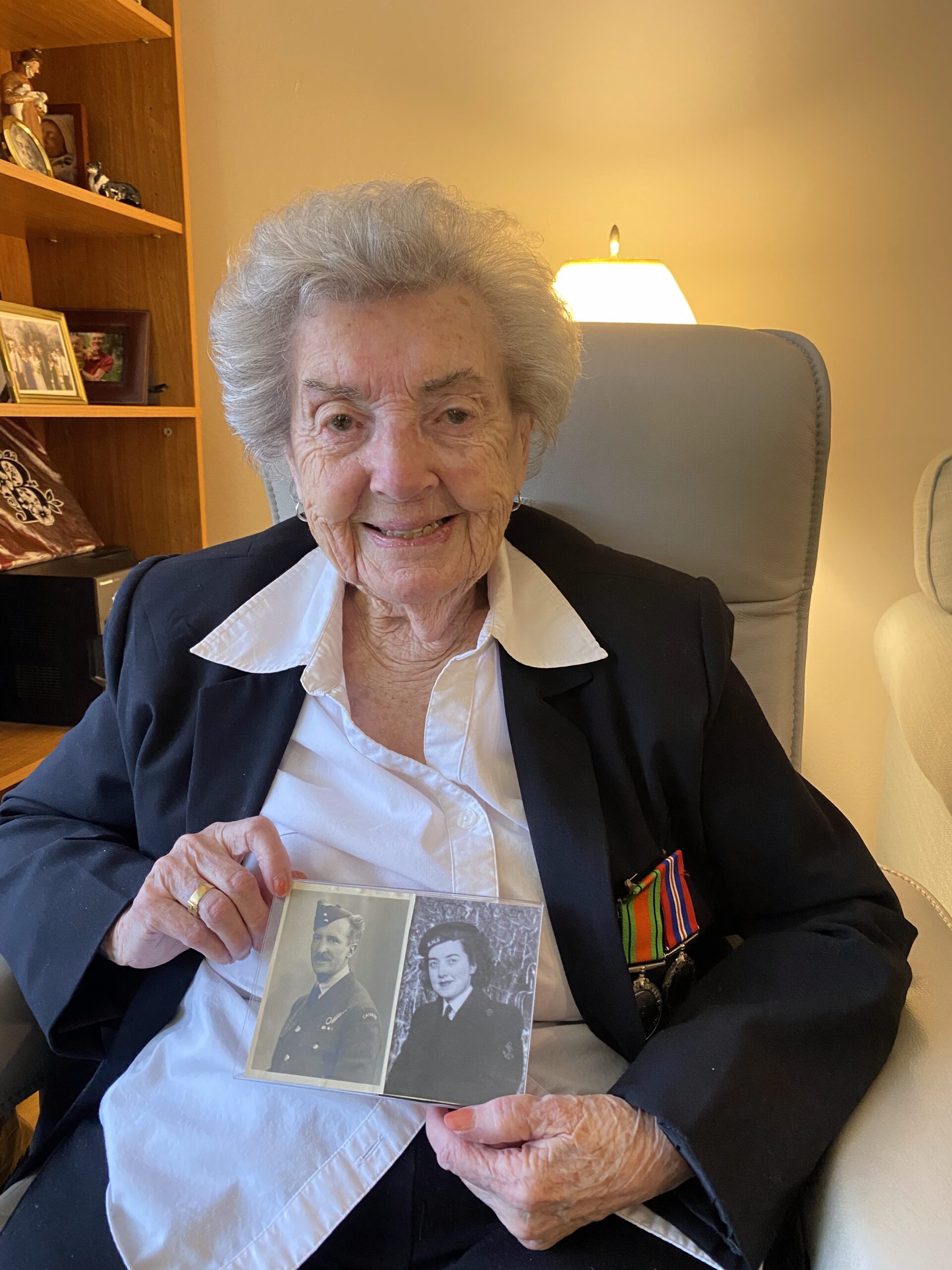 Betty Tharratt was born on September 21, 1921 in Liverpool, England, and she and her older brother grew up in the nearby town of Wallasey. Her father, a Great War veteran, worked on the Liverpool docks, where his horses transported goods to the different warehouses in the city. Betty recalls that her early life was good – but all that changed dramatically when she and her family heard the news on the radio in September 1939: England was at war. She lived through the Liverpool Blitz in that early part of the war, while her brother was called up for duty. Betty decided to join the navy in her own right, and she became a WREN. She spent most of her war at Derby House in Liverpool, where the plotters were at work managing the Battle of the Atlantic: Betty worked at the front desk, and she was able to meet the likes of Churchill and the king. She also met her future husband there, and Betty received some attention in the papers for a cloth she was working on, where she gathered the signatures of many of wartime co-workers. During the war Betty and her generation experienced many highs and lows: the evacuation at Dunkirk, rationing, the wartime dances, Victory Day – and the loss of family, friends and neighbours. Betty and Leonard married near the end of the war, and she chose to accompany him on his return to Canada, making her one of the thousands of Canadian war brides who came across the Atlantic to make a home in Canada. The two of them built their lives and family in Betty’s new country, finding their way in the rhythms of postwar life. Betty Tharratt was interviewed by Scott Masters and Zach Dunn of Global Veterans’ Stories in February 2026.