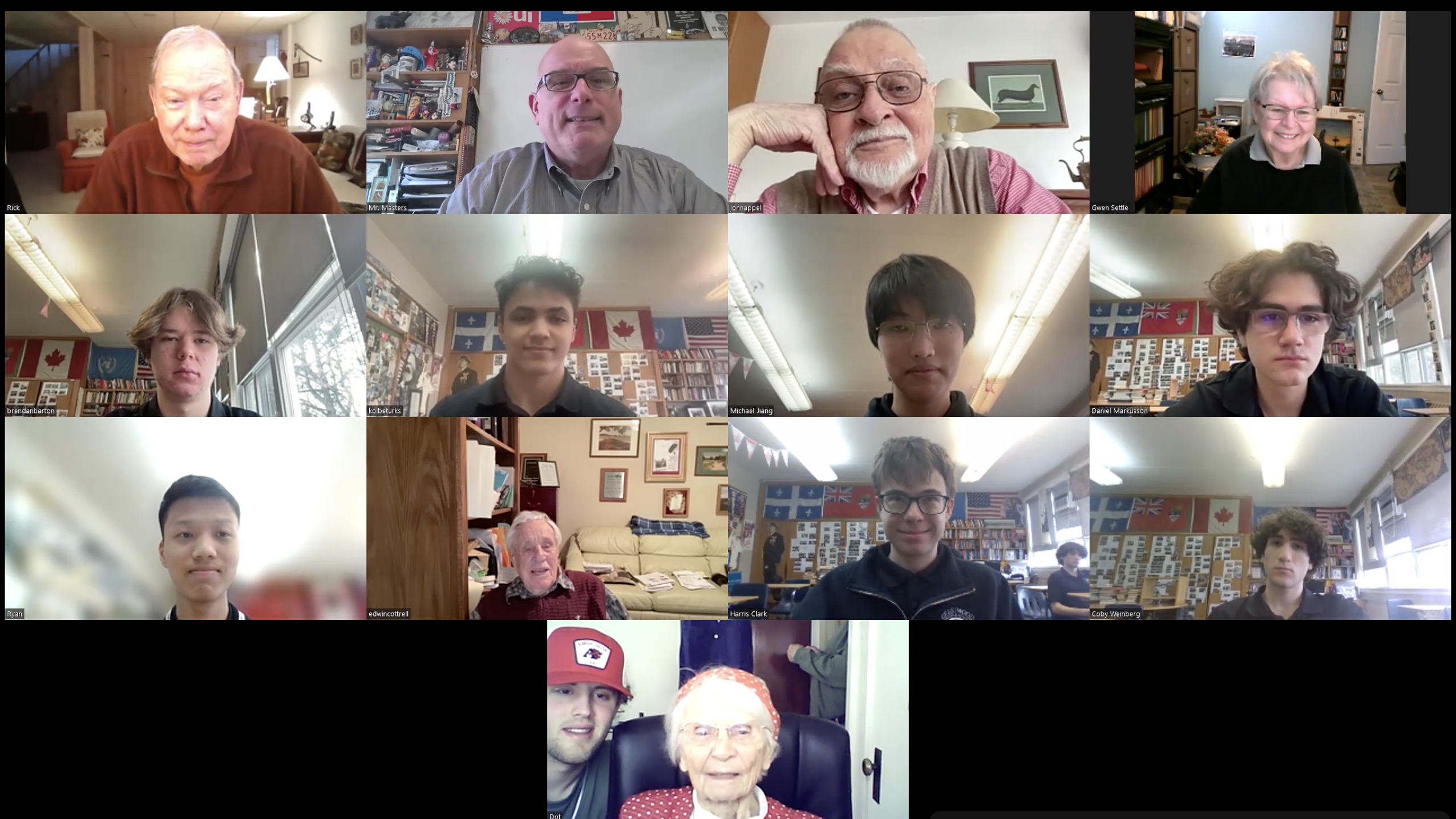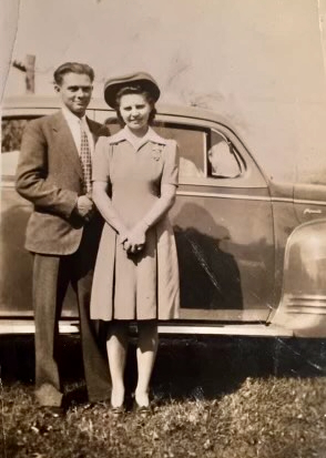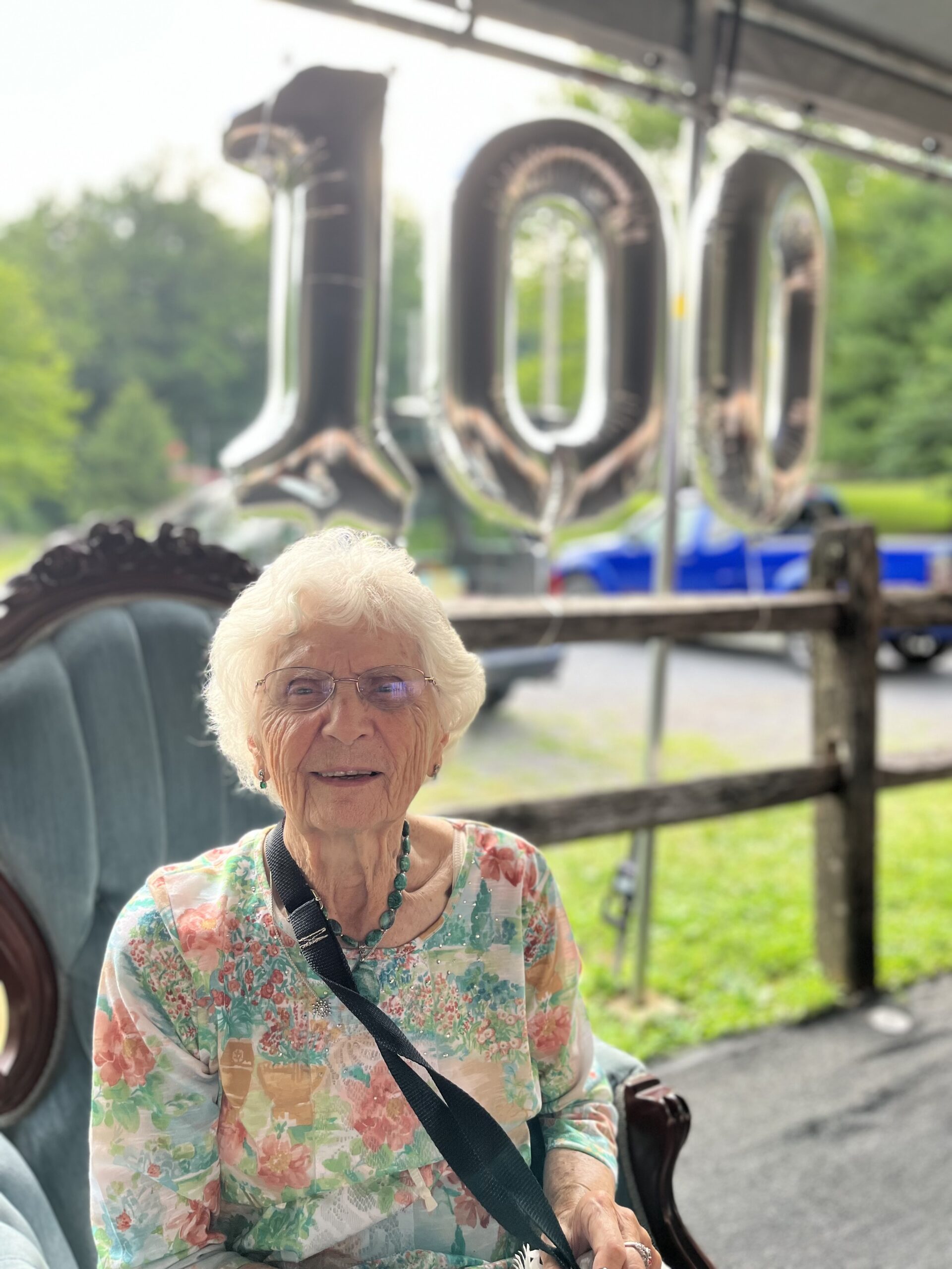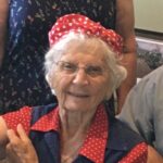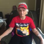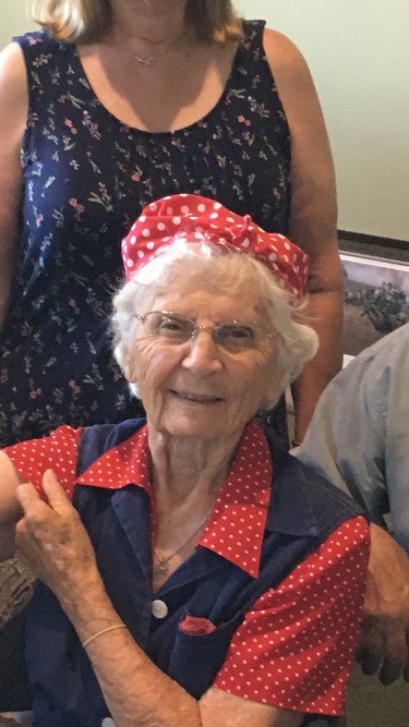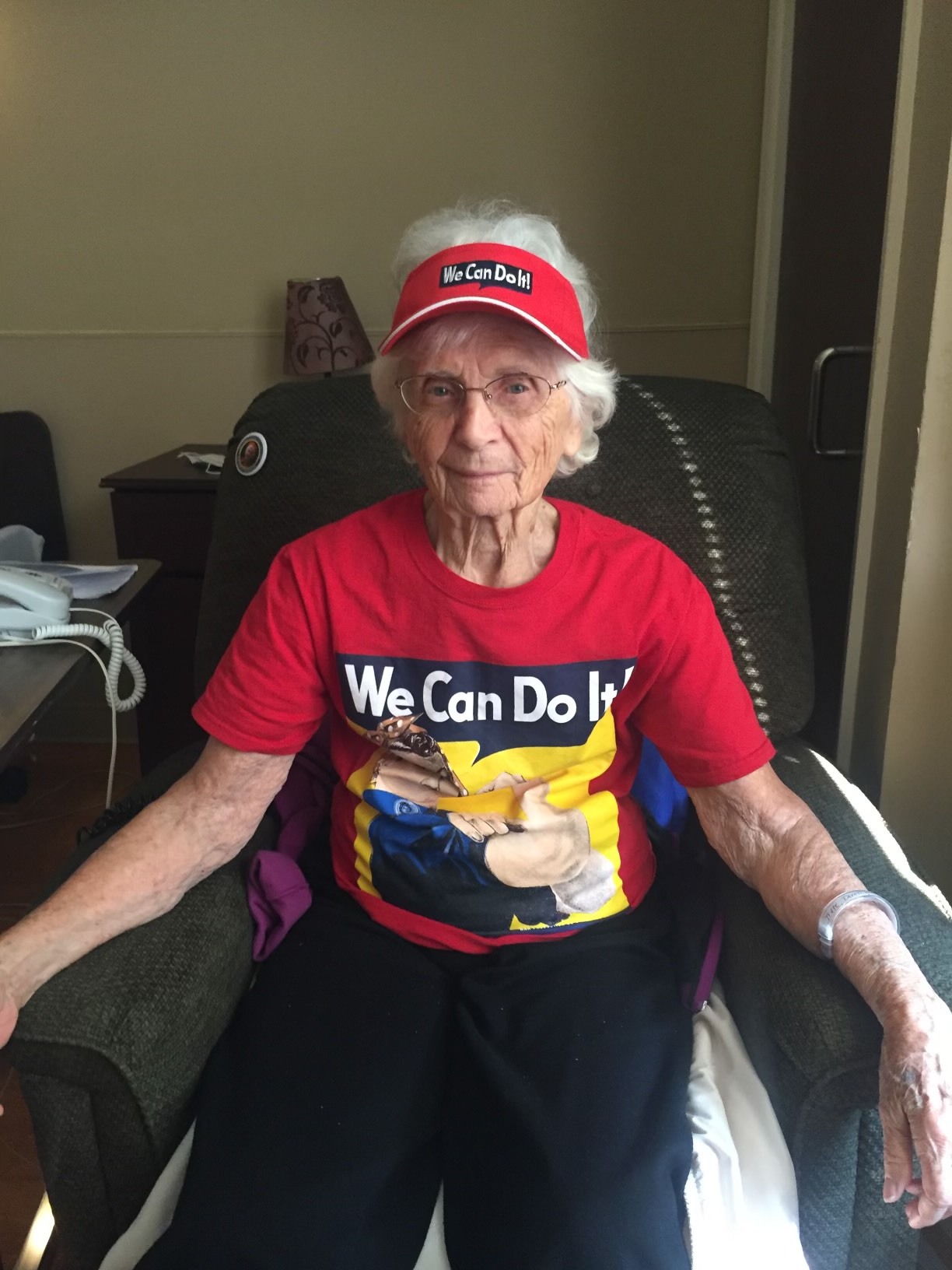 Dorothy Trate was born July 9, 1922 in Narvon, a community in Caernarvon Township in Lancaster County, Pennsylvania. She grew up there against the backdrop of the Great Depression. Her husband was put on deferment during the war, as he operated specialized machinery in a war work factory. Dorothy for her part was a ‘Rosie the Riveter,’ though she called herself ‘Dottie the Punch Press Operator,’ helping with sheet metal that would be used on airplanes. Like so many American women, she made the difference in that war, setting American industrial production to unprecedented heights. Dorothy zoomed with American History 11 students in April 2024. She appears here with Tyler Boland of “Keeping History Alive” who helped to facilitate this interview.